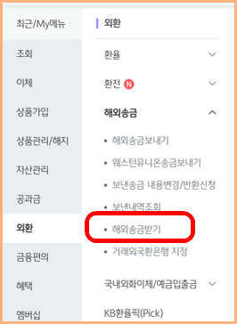 은행이름도 영문으로 작성해야 하므로 외환 메뉴에서 해외 송금받기로 들어가서 스크롤을 아래로 내리면 국민은행 영문이름 KB KOOKMIN BANK을 확인하고 입력합니다.