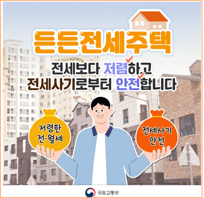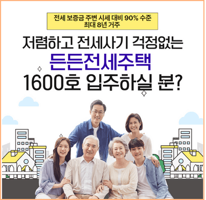 든든전세주택은 무주택자에게 안정적인 주거를 제공하기 위해 마련된 제도입니다. 시세의 90% 전세가로 최대 8년간 주거 불안을 해소하고 안정적으로 생활할 수 있을 것입니다. 이번 든든전세주택으로 보다 안락한 주거 생활을 누리길 바랍니다.