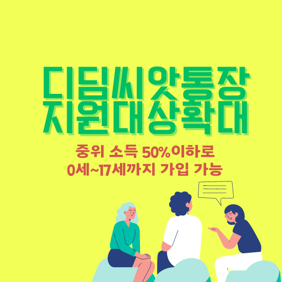 디딤씨앗통장은 2007년부터 시작된 사업으로 취약계층의 아동들이 경제적 어려움 없이 교육, 의료, 주거 등을 안정적으로 받을 수 있도록 지원하고 있는데 최근 지원 대상의 소득 기준 및 연령이 확대되었다고 하니 자세히 알아봅시다.