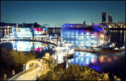 세계최초로 물 위에 떠 있는 인공섬으로 채빛섬, 가빛섬, 솔빛섬과 야외무대인 예빛섬이 있습니다.