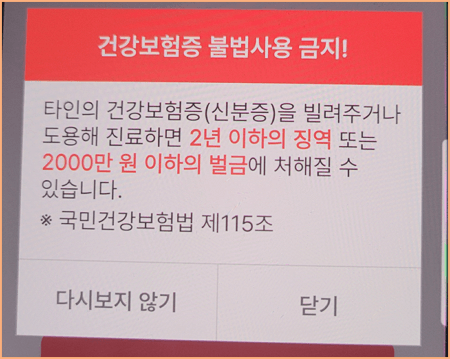 종이 건강보험증을 제시하고 병원 진료를 받다가 언제부턴가 본인 이름을 말하고 건강보험 가입자만 확인되면 진료를 할 수 있었는데 건강보험증을 대여하거나 도용하는 사례가 많아 부정 수급을 사전에 예방하기 위함이라고 합니다.