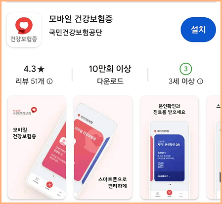 🔸본인명의 휴대폰(플레이 스토어 또는 앱스토어)에 들어가서 '모바일 건강보험증'을 검색하셔서 설치하시면 됩니다.