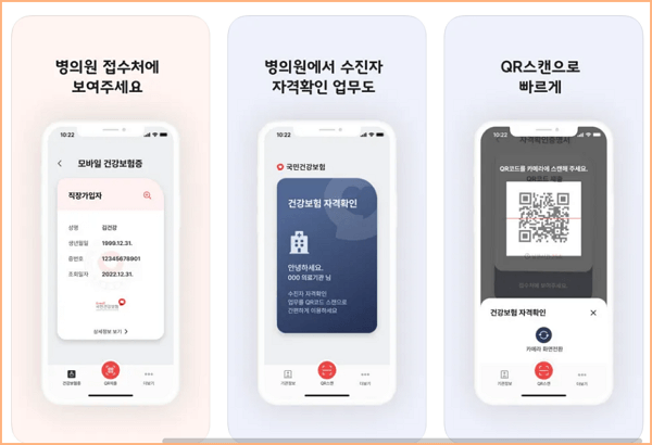 병·의원을 방문 시 신분증을 확인해야 한다고 안내드렸는데 본인 휴대폰에 앱을 다운로드해서 휴대폰 인증으로 간편하게 모바일 건강보험증을 발급받아 이용할 수 있습니다.
