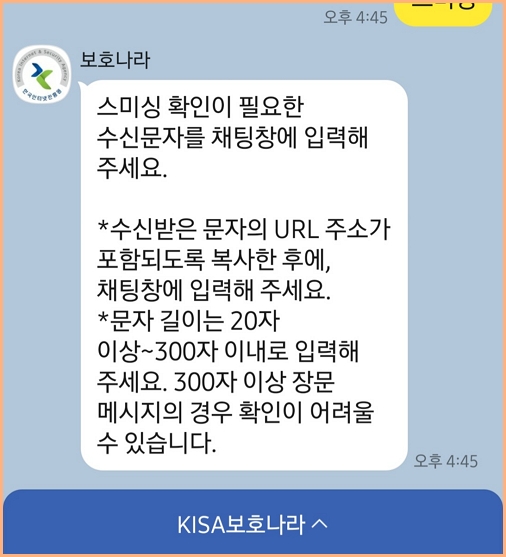 스미싱 확인 서비스(KISA)