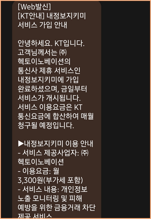 문자로 내 정보지킴이라는 유료서비스 가입 안내를 확인하고 통신사에 들어가서 부가서비스를 다시 해지해야 하니 시티즌코난 앱 설치 시 유의하시기 바랍니다.