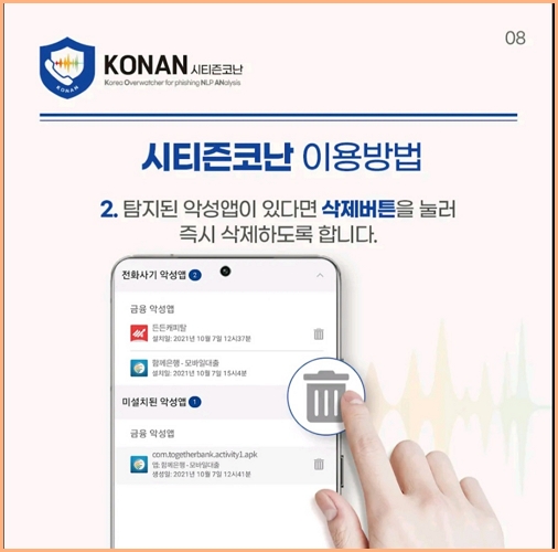 새로워지는 보이스피싱과 스미싱사고에 미리 예방하고자 한다면 '시티즌코난 앱'을 설치하시길 권장드립니다.