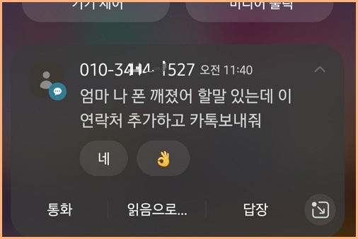 예전부터 계속되는 자녀의 폰고장이나 깨져서 다른 연락처로 연락하라는 보이싱문자는 알려져 있지만 그래도 문자를 받으니 조심하게 됩니다.