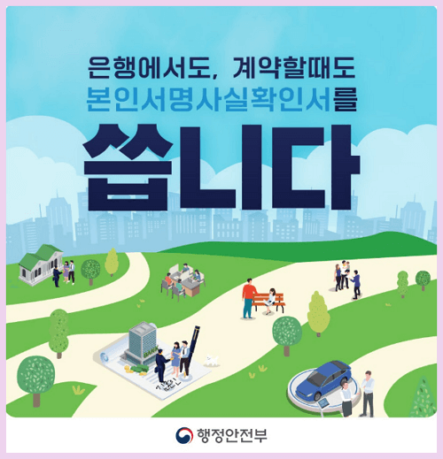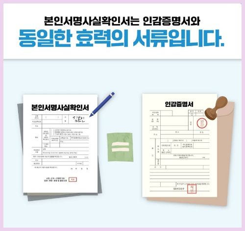 ▶ 본인서명사실확인서는 도장 준비가 필요 없고 자신의 주소지가 아니더라도 전국 읍·면·동 주민센터에서 신분 확인 후 발급받을 수 있습니다.