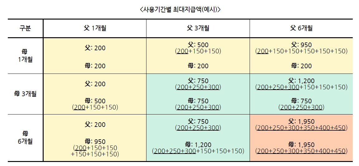4. 6+6 부모 육아 휴직제 지원 금액 – 월 200~450만 원, 최대 6개월
