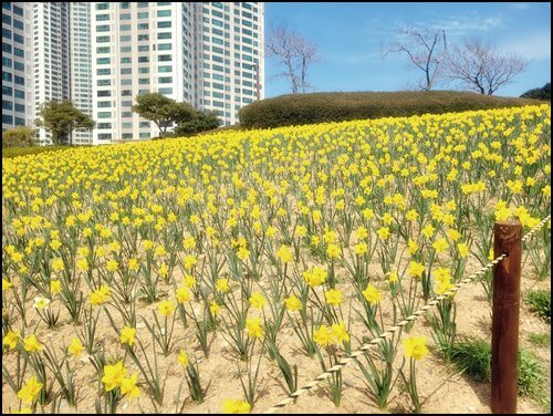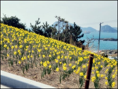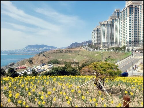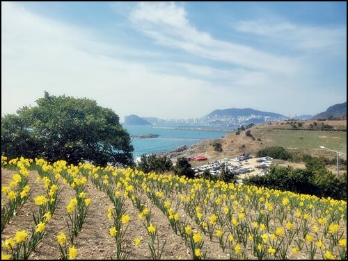 부산 오륙도 공원에는 매년 봄이 되면 노란 수선화로 많은 사람들이 찾고 있어요.