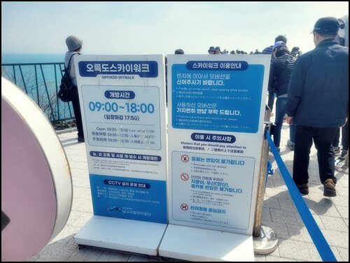 스카이워크는 해안 절벽 위에 바닥을 유리로 설치되어 있기 때문에 내려다보는 짜릿함이 괜찮더라고요.