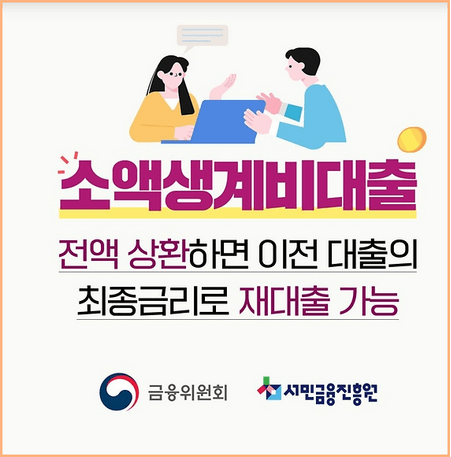 신용평점이 낮거나 소득증빙이 어려워 대출받기가 힘든 경우 있으실 텐데 서민금융진흥원에서 소액생계비 대출로 100만 원 생계비를 저렴하게 빌릴 수 있는 대출입니다. 급하게 돈이 필요한 분에게 빠르게 지원된다고 하니 놓치지 말고 여기서 바로 알아보겠습니다.