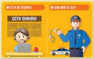 - 자치구 CCTV 관제센터 신고 접수: 5초 후 자동 접수
