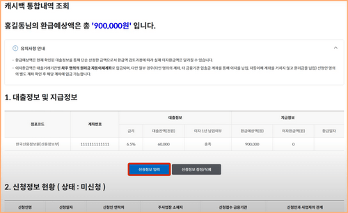 6. 인증이 완료되면 환급예상액을 확인하고 신청정보 입력을 클릭합니다.