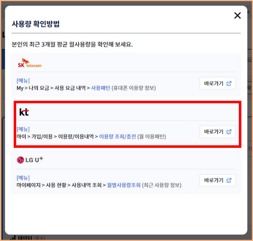⬇️ 내가 사용하는 데이터 사용량을 바로 확인할 수 있습니다. ⬇️
