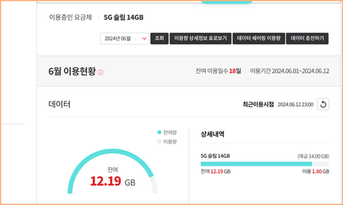 제 경우에는 와이파이되는 공간에서 휴대폰을 사용하고 외부에서는 사용을 많이 하지 않기 때문에 항상 데이터가 많이 남습니다.
