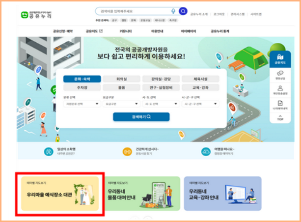 공유누리의 '우리 마을 예식공간 대관' 서비스를 이용하면 전국의 공공 예식공간의 위치와 정보를 파악할 수 있습니다.