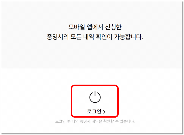 모바일 앱에서 신청한 증명서의 모든 내역 확인을 위해서는 로그인을 해야 합니다.