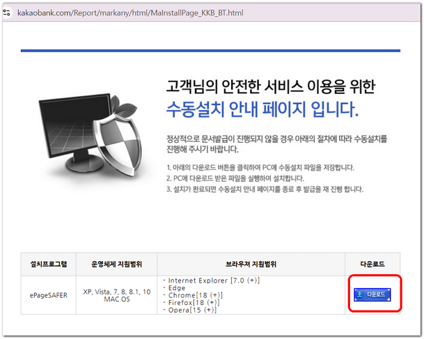 설치프로그램 다운로드 버튼을 클릭하여 PC에 설치 파일을 저장하고 다운로드한 파일을 실행하여 순서대로 진행해 설치하면 됩니다.