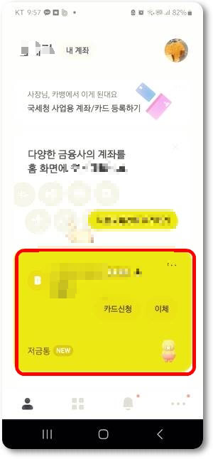 스마트폰에서 카카오뱅크 앱을 실행합니다. 본인의 계정으로 로그인합니다.