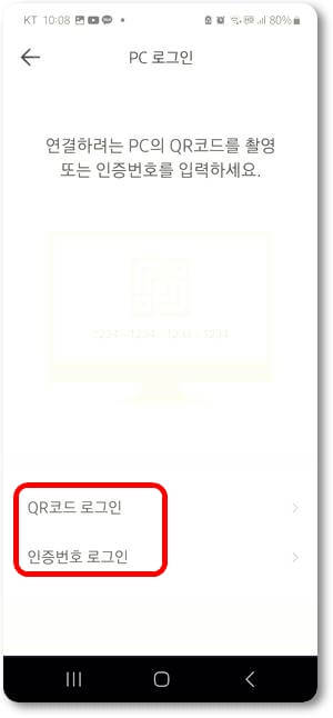 4. QR코드 또는 인증번호로 로그인하기