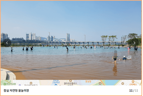 한강 수영장중에 가장 큰 규모(총 28,000㎡)로 쾌적하게 물놀이할 수 있을 것입니다.