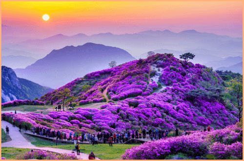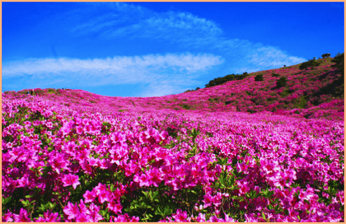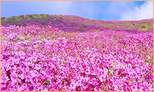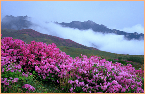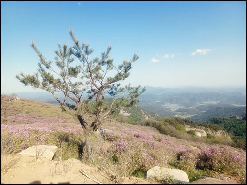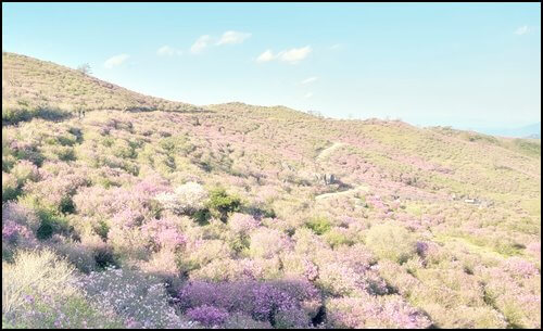 1980년대에 목장으로 개발되어 목장에서 방목한 젖소와 양들이 철쭉에 독소가 있다 보니 철쭉은 그대로 두고 풀만 먹다 보니 이렇게 철쭉만 남아 대규모 철쭉군락지가 형성이 되었다고 합니다. 해발 800~900m 지점에 광활하게 펼쳐져있는 핑크빛, 붉은빛 철쭉풍경은 시야도 트여 하늘과 산과 철쭉이 어우러지는 멋진 풍경을 만날 수 있습니다.