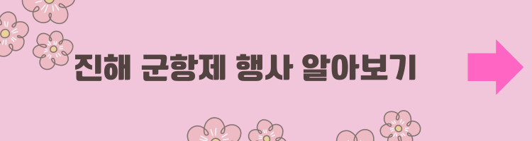 군항제는 꽃축제와 승전행차, 추모대제, 군악의장페스티벌, 해군 군악대공연, 해군사관학교와 해군진해기지사령부 개방등을 볼 수 있어 볼거리가 많습니다.